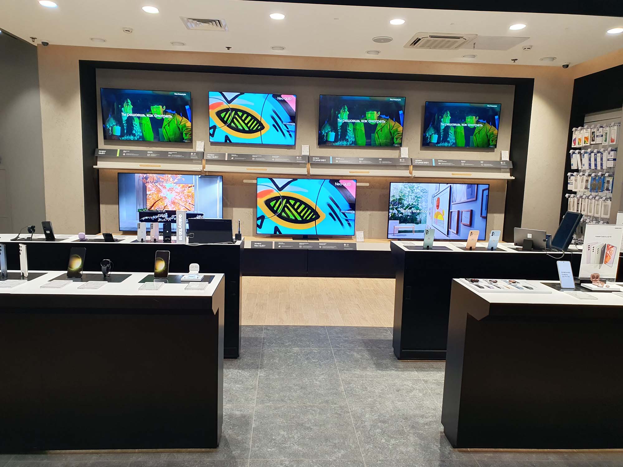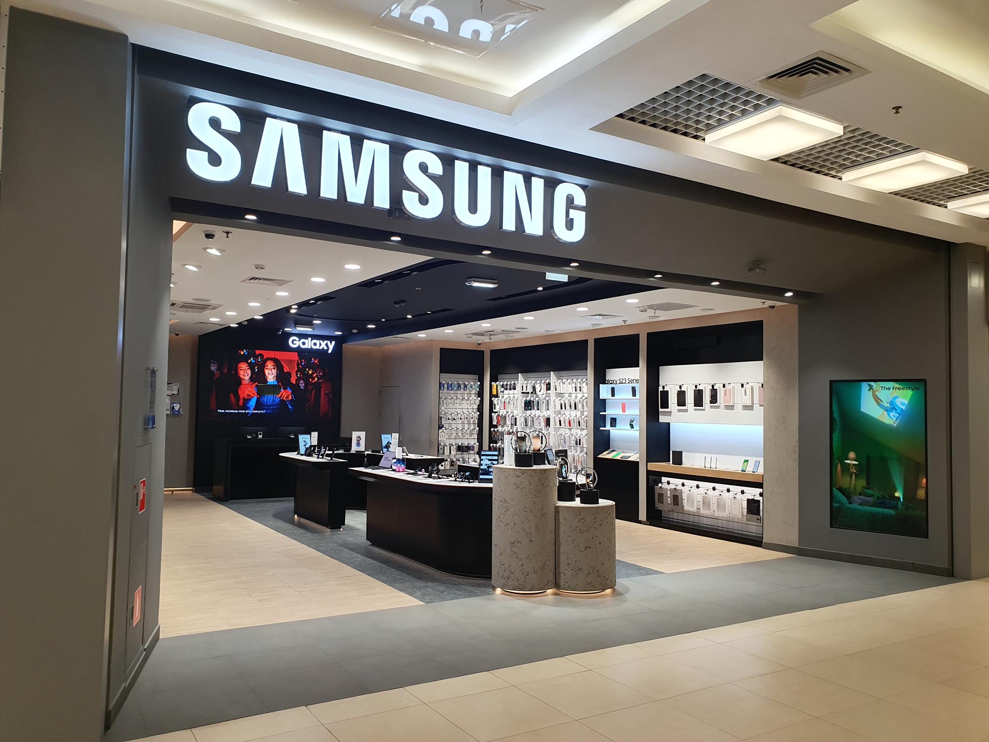 В фирменном магазине Samsung представлен широкий выбор мобильных и носимых устройств, различных аксессуаров, телевизоров и саундбаров. Также здесь можно купить аксессуары ведущих производителей.